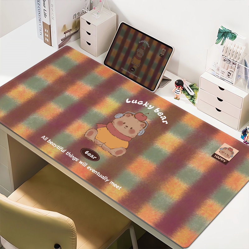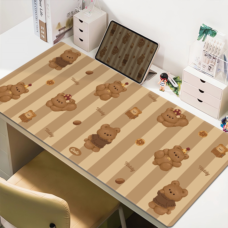 美拉德复古小熊鼠标垫女生超大号办公桌垫定制耐脏桌面电脑键盘垫