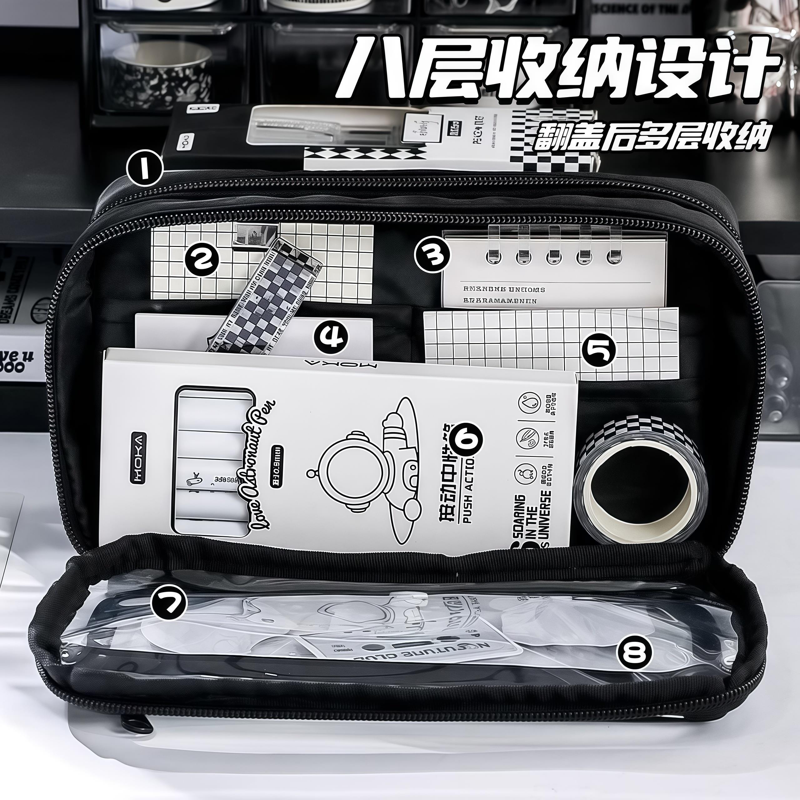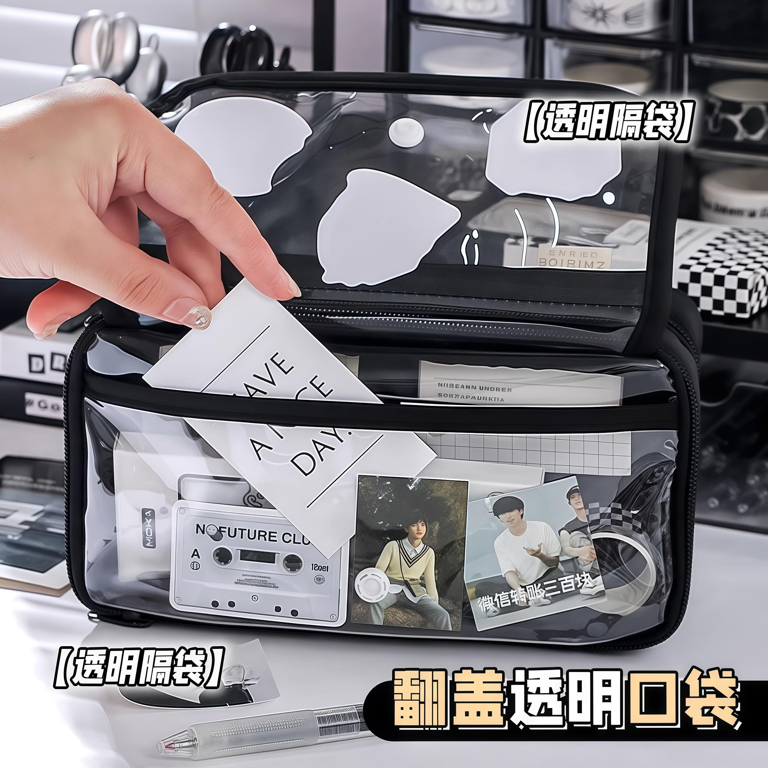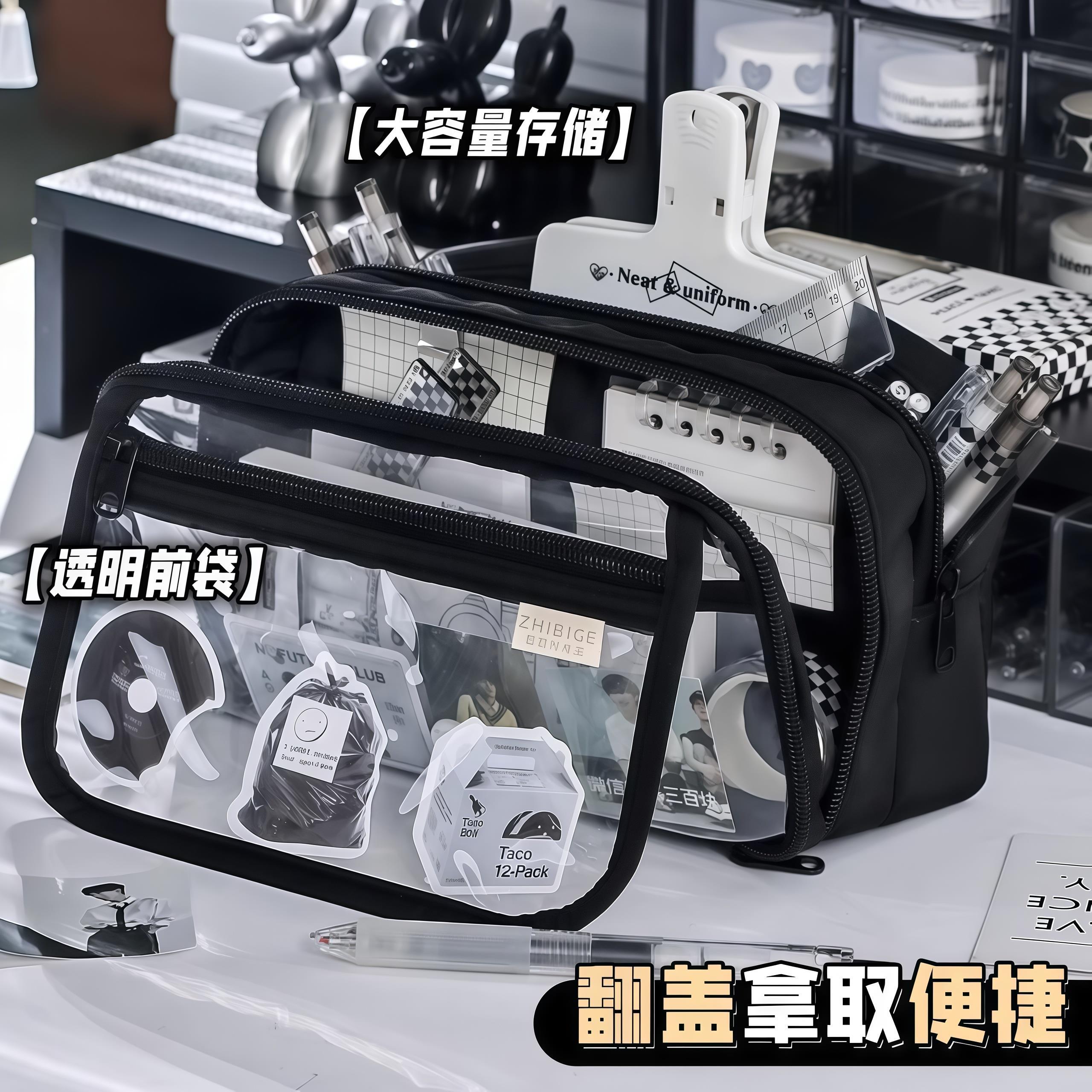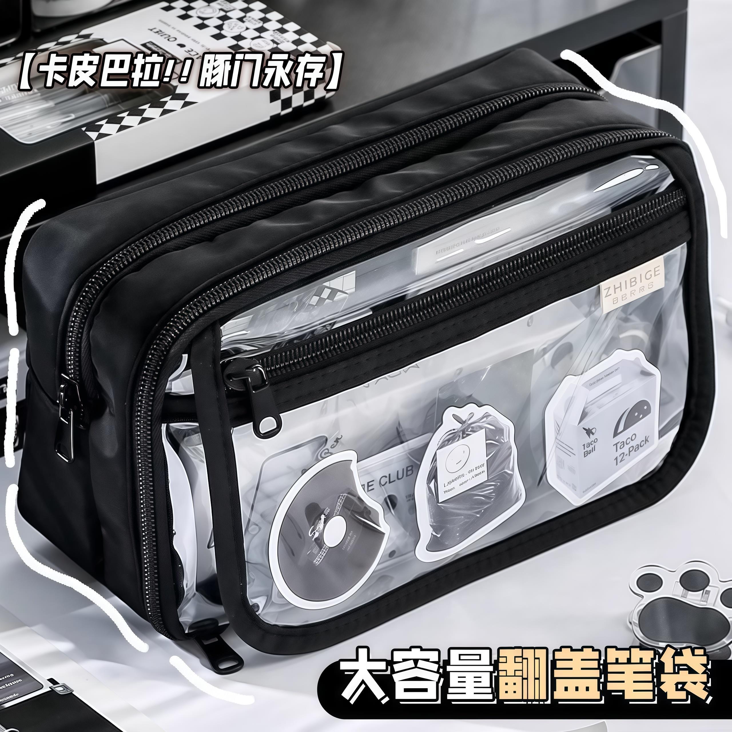 大容量痛包笔袋男孩子小学生女生高颜值初中透明简约黑色帆布多层超大收纳2025新款设计感小众文具袋铅笔盒