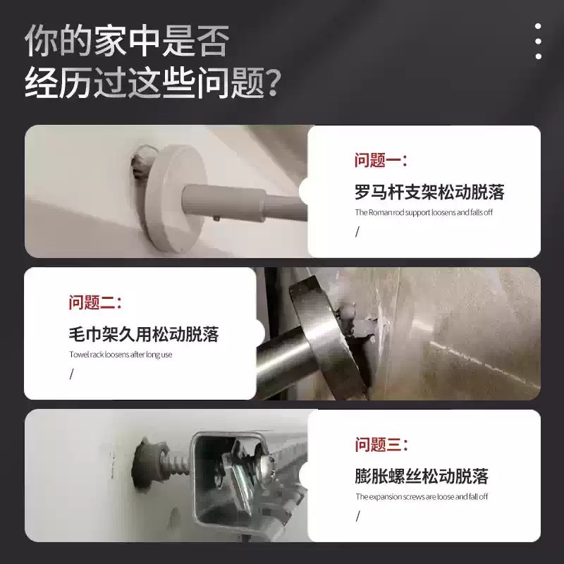 罗马杆窗帘架脱落修复膨胀螺丝松动墙面孔洞洞修补门吸承重