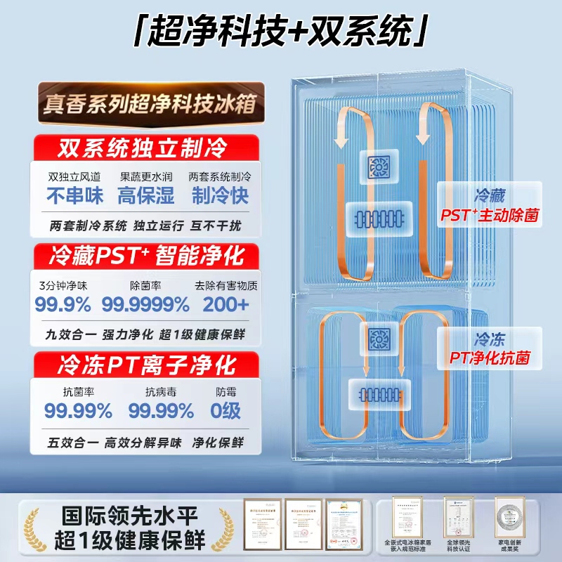 容声501pro十字双开四门冰箱家用双系统循环主动除菌官方一级变频