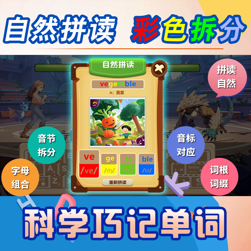 一决词雄英语谐音梗背单词神器自然拼读趣味闯关游戏记单词软件机