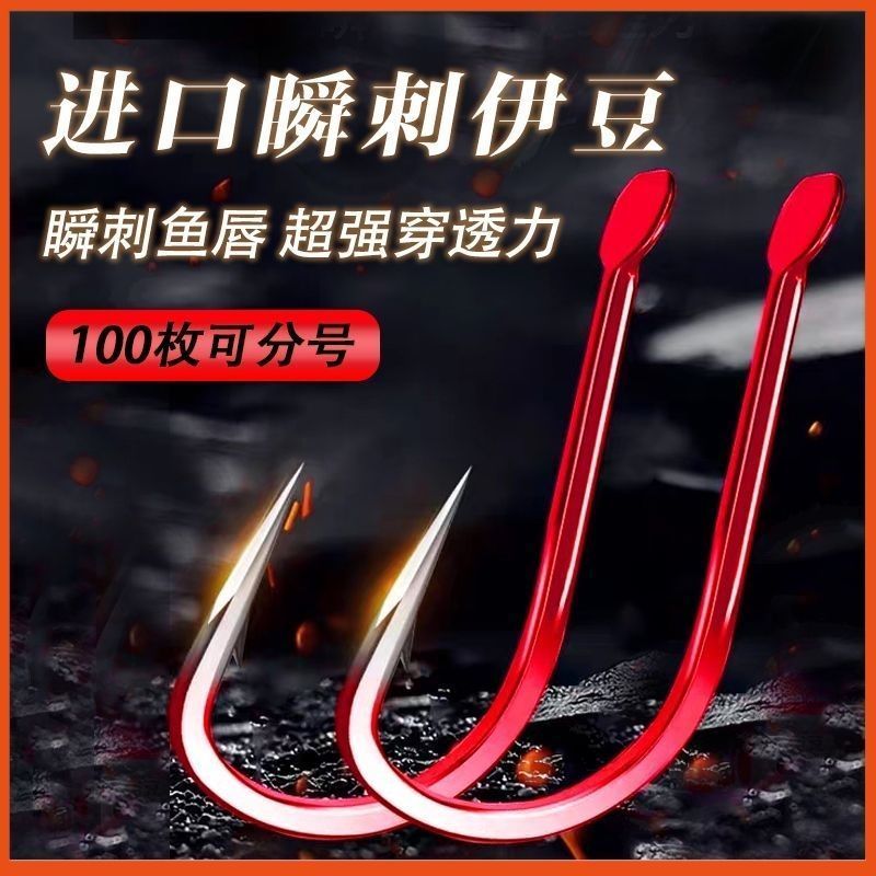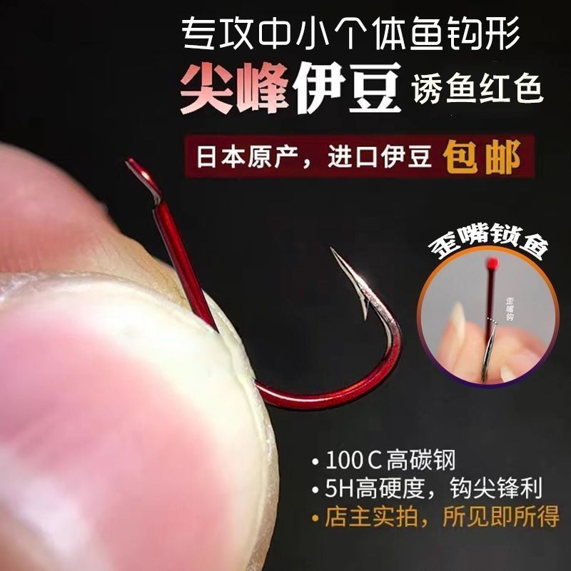 精品鬼牙红色伊豆有倒刺鱼钩散装歪嘴钩加强碳钢小鲫鱼鲤鱼渔具