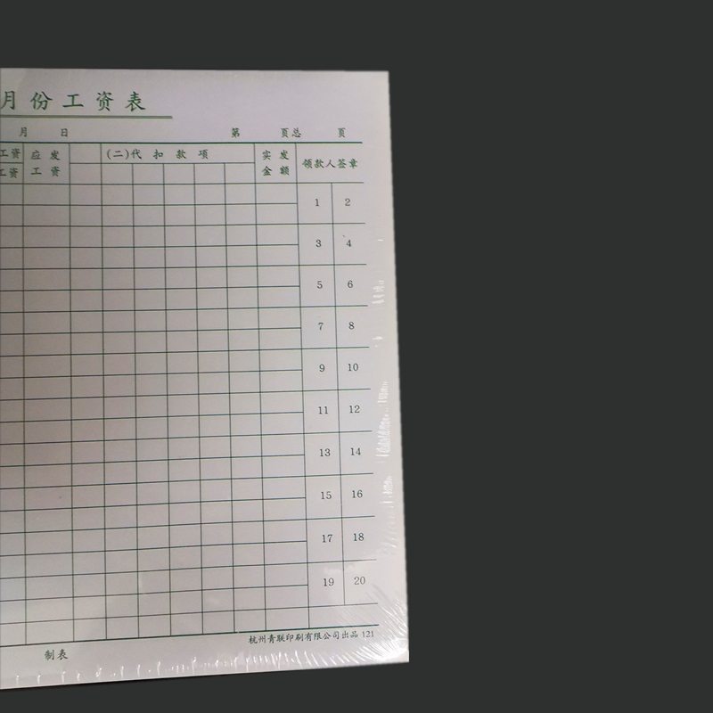 【10本装650张】青联121 月份工资表工资发放表65张/本60克双胶纸质 65张每本 16开 2本装5本装