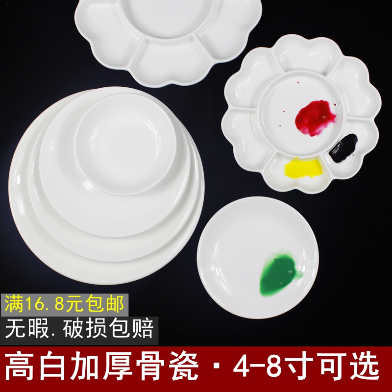 精品加厚骨质陶瓷调色盘高白陶瓷白盘梅花盘初学者学生国画水粉水彩颜料调色盘碟墨碟国画书法工具美术材料