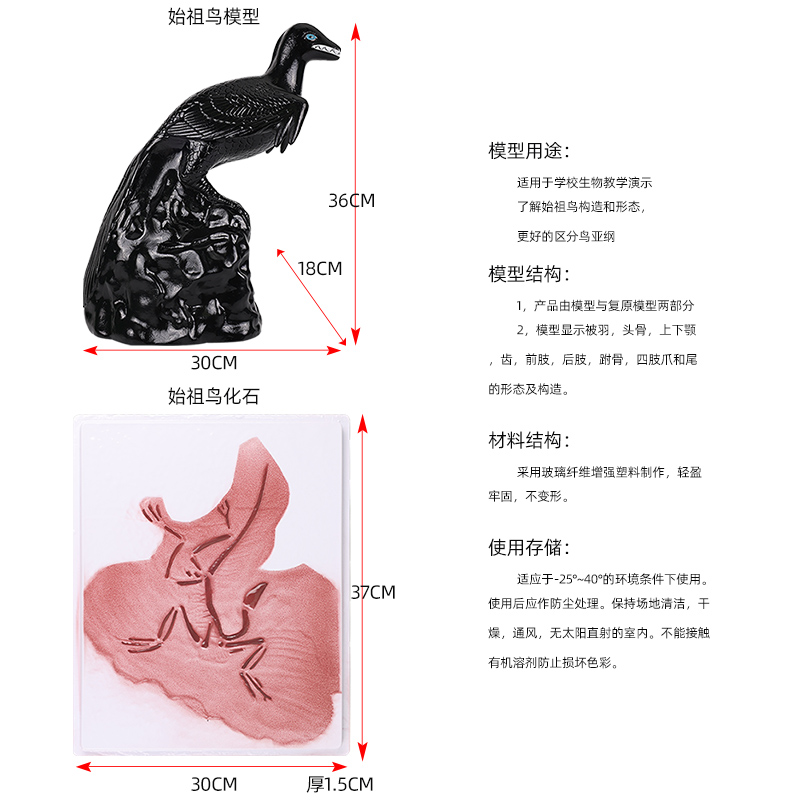 始祖鸟化石及复原模型 鸟纲分类鸟的起源进化论古生物学实验器材教具 初中生物教学仪器