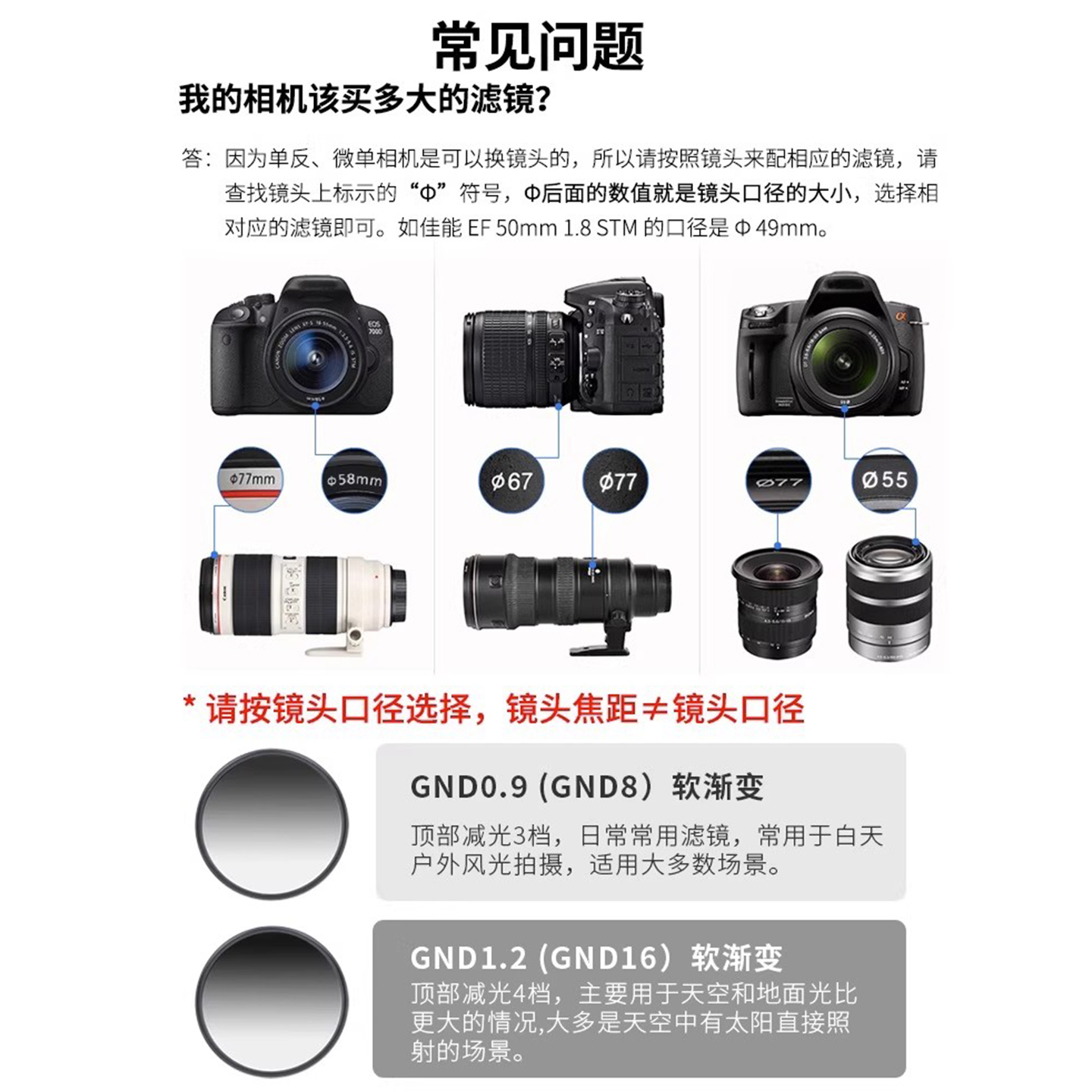 卡色 GND0.9 渐变镜 40.5 43 46 49 52 55 58 62 67 72 77 82mm 适用于佳能尼康索尼富士相机滤镜 中灰渐变镜