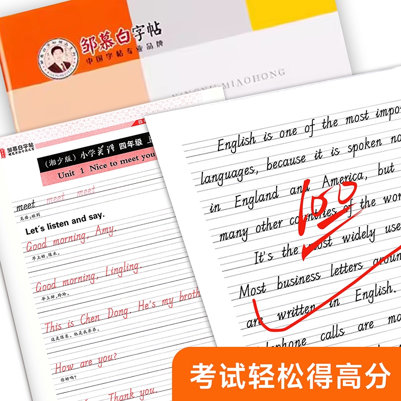 湘少版邹慕白英语字帖国标体3-6年级描红三四五六年级上册下册课文同步手写体练字本小学生儿童描临练字帖单元