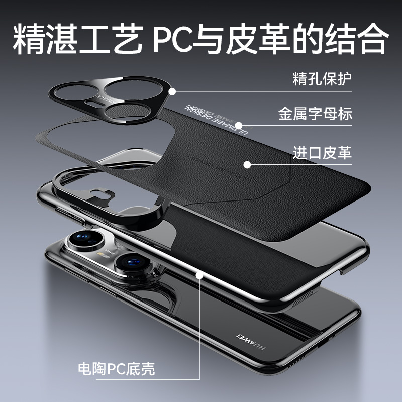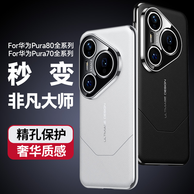适用于华为pura80pro手机壳真皮非凡秒变大师LMR-AN10精孔护镜pure70proultra电镀保护套牛皮p80por+皮套牛皮