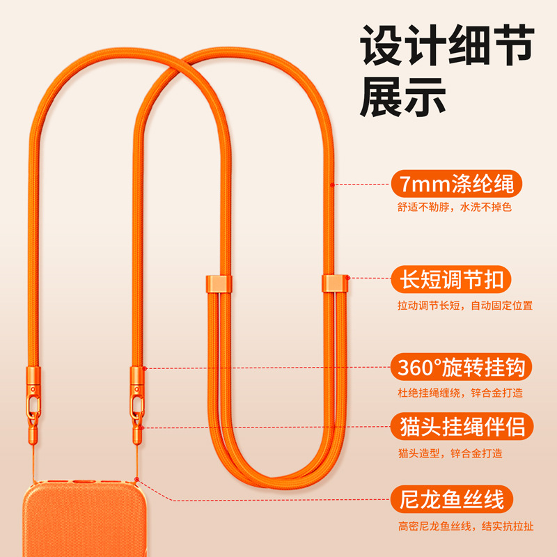 阑钻适用苹果17手机壳挂绳斜挎可调节2025新款简约绳手机背带绳女长款户外出行运动防丢防摔精致耐用不勒脖