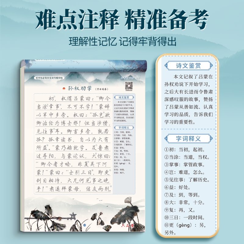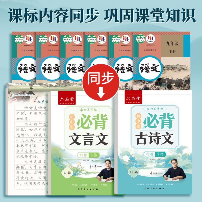 六品堂行楷行书初中必背古诗词和文言文中学生高中生古诗一七年级上册人教版语文同步小升初字帖初中生练字帖练的作文钢笔书法描红