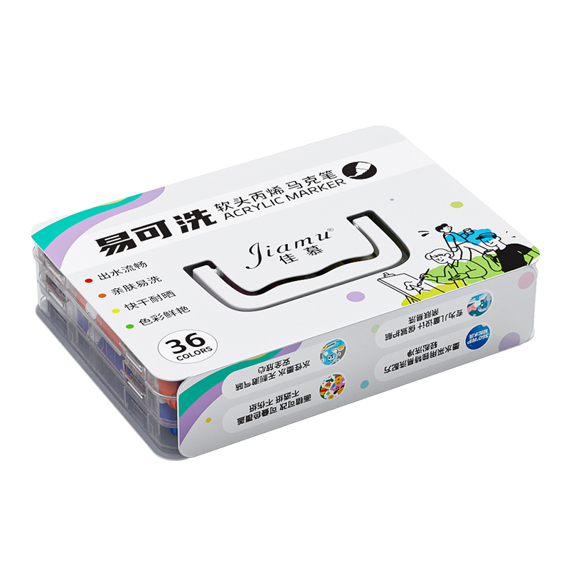 恩米小黑盒直液式丙烯马克笔软头颜色笔小学生幼儿园画画美术专用