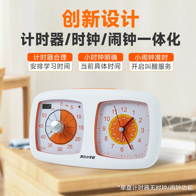 小橙时间管理器计时器双表盘倒计时可视静音学生充电学习暑假自律