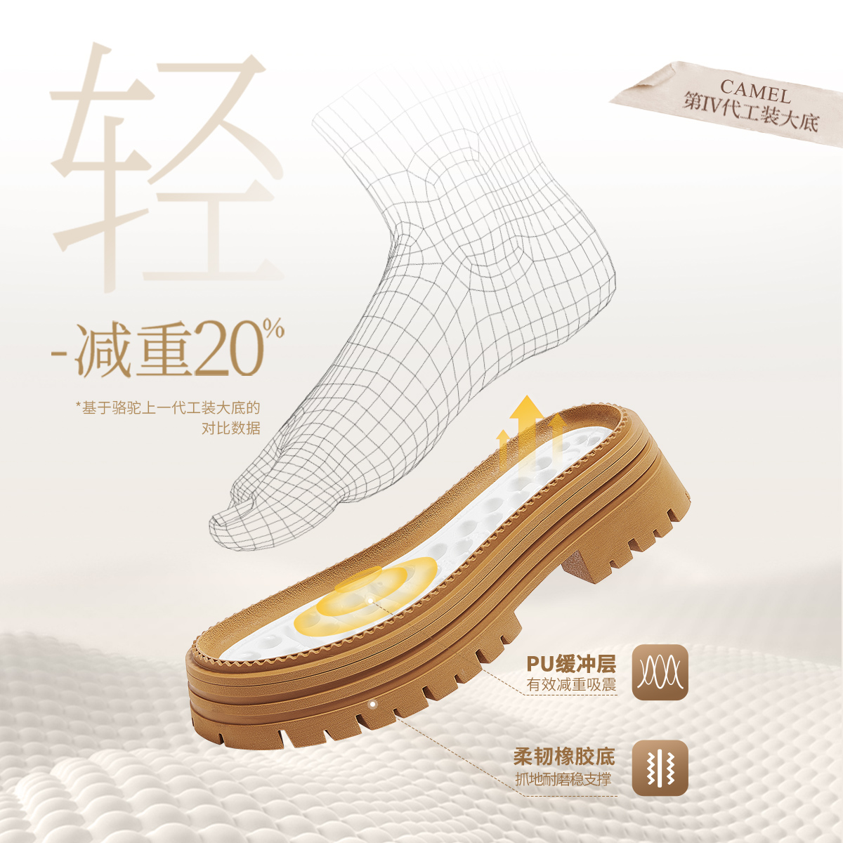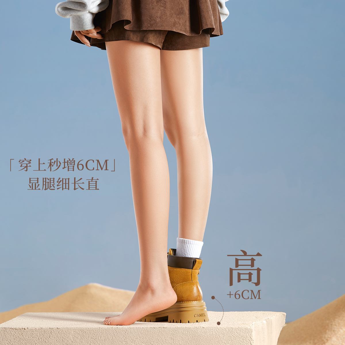骆驼女鞋2025秋季骆驼马丁靴短筒靴子女厚底增高大黄靴登山鞋