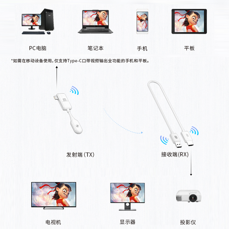 点对点typec无线投屏hdmi转换笔记本连投影机电视适用于苹果15/16