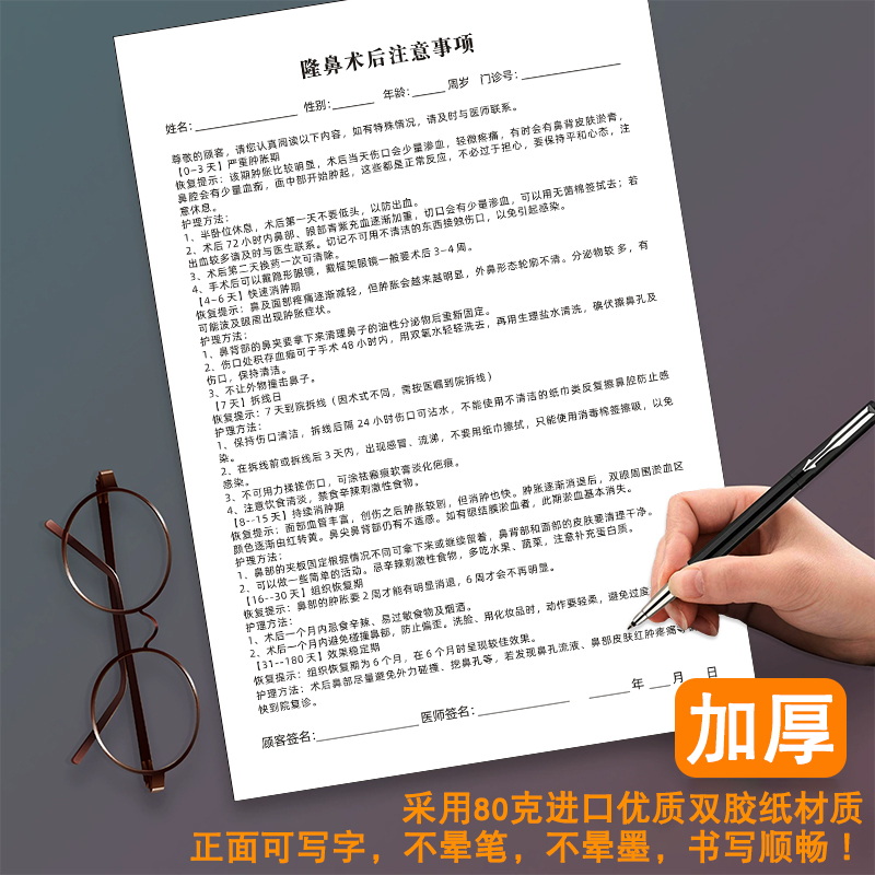 隆鼻术后注意事项医美整形玻尿酸水光针提眉术知情书激光治疗须知