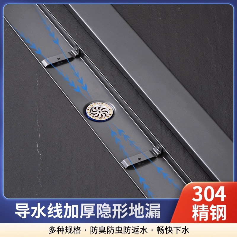 导水线枪灰隐形地漏长条型 卫生间淋浴房隐藏式可镶砖全铜芯防臭