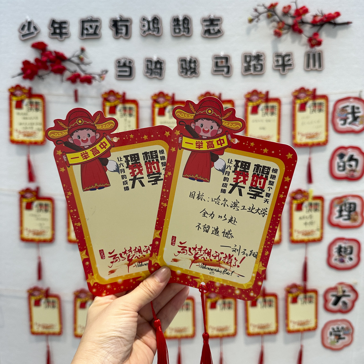 创意高三班级环创墙我的理想大学教室文化墙布置装饰卡片激励学生高考学习励志手写空白心愿目标梦想留言卡片