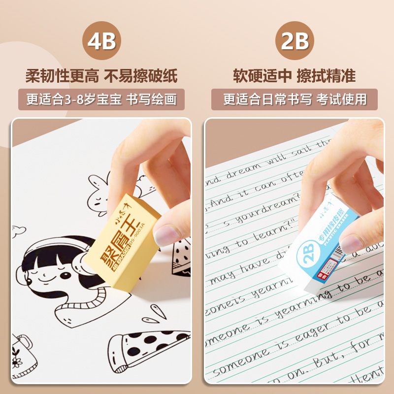 橡皮擦小学生专用少屑美术专用4B橡皮擦字成线像皮超干净不留痕安全无毒幼儿园象皮一年级学习用品铅笔橡皮擦