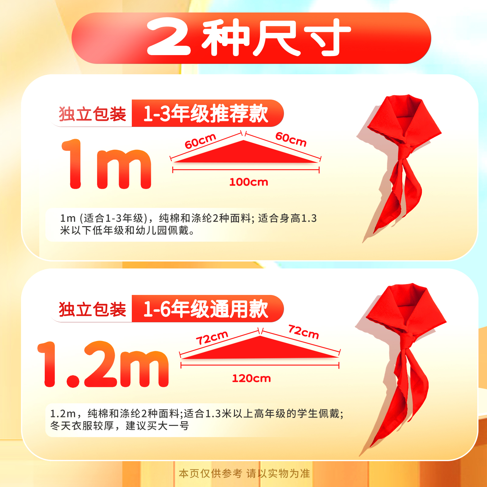 得力红领巾小学生纯棉不掉色儿童通用专用标准国标初中生小号涤纶3年级加厚米1.2m大号