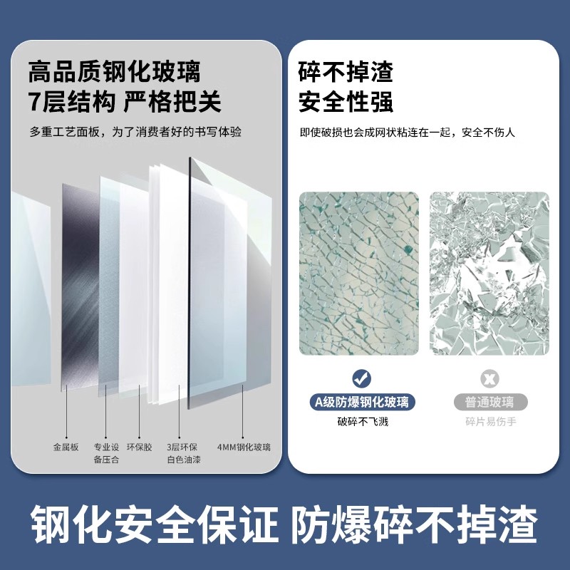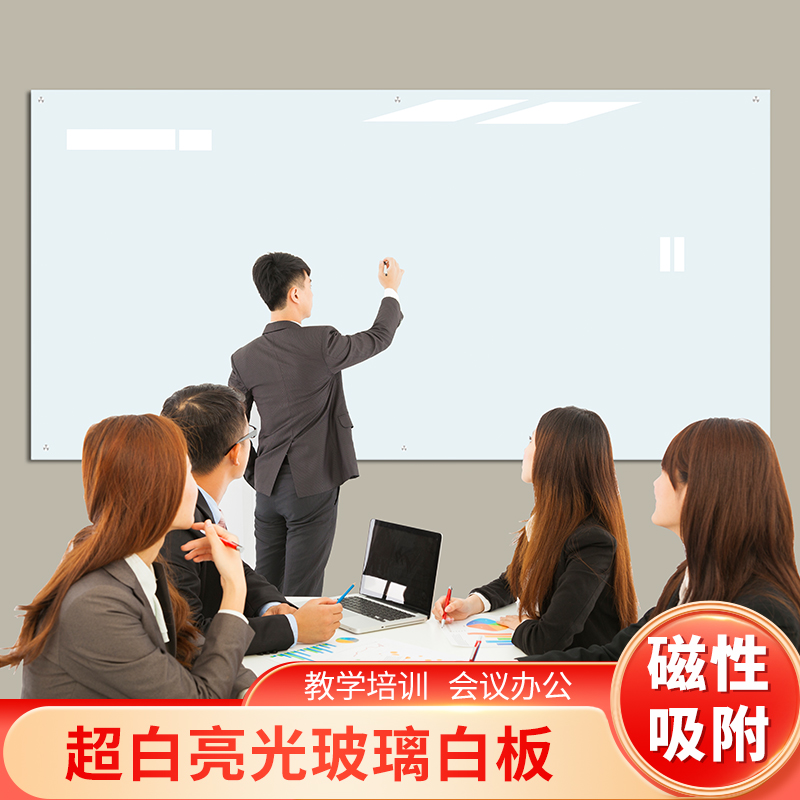 超白磁性玻璃白板写字板挂式学校培训玻璃黑板办公室投影家用白板