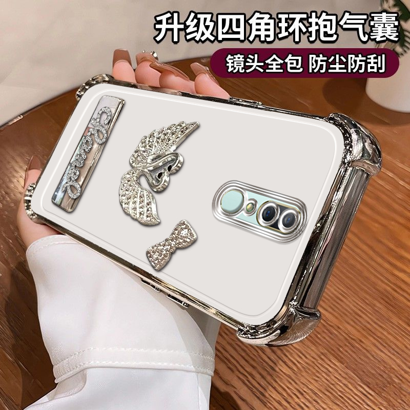 适用OPPOA9手机壳闪钻天鹅电镀四角防摔A9X简约硅胶气囊全包oppoA9X闪钻字母电镀支架新款保护套