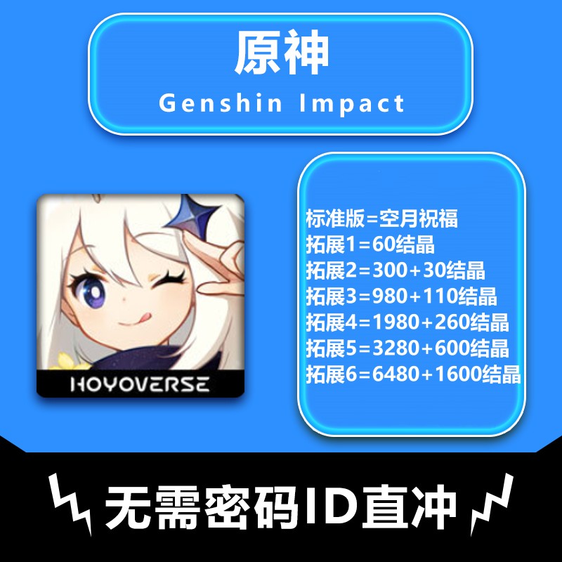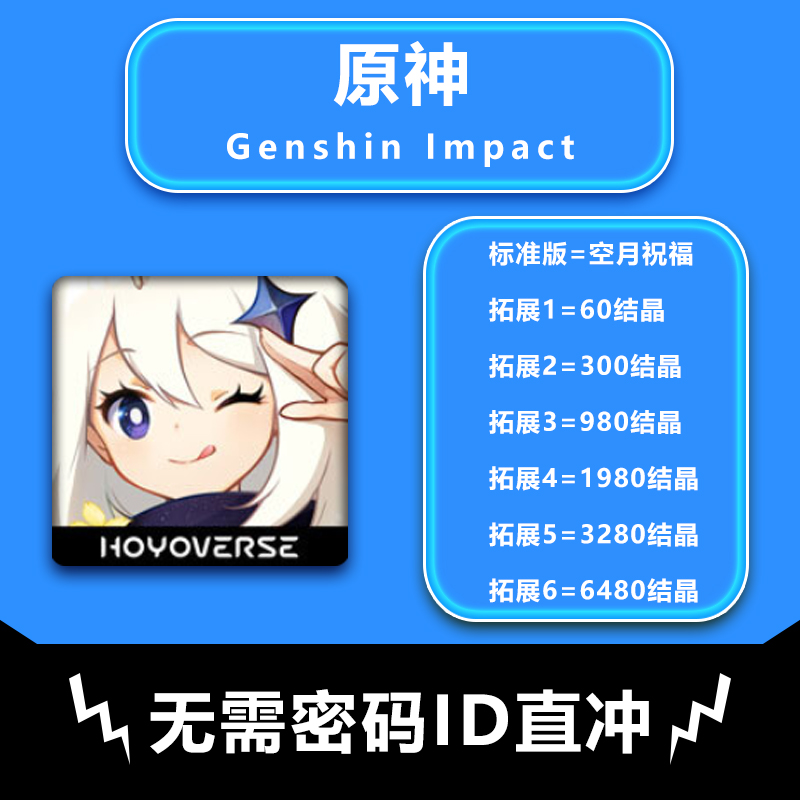 Genshin原神6480创世结晶到账8080月卡空月国际服祝福 代充 充值