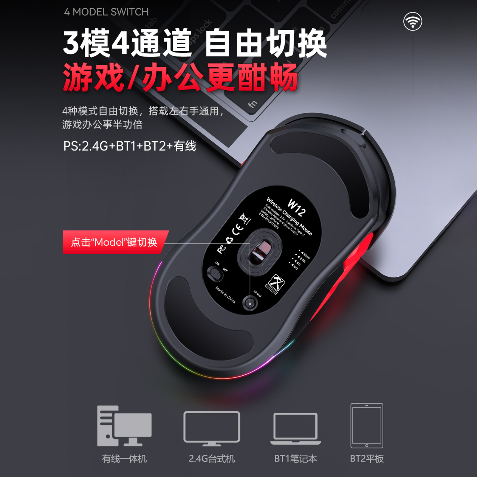 可充电左右手无线蓝牙三模多通道多侧键自定义宏游戏鼠标吃鸡连点