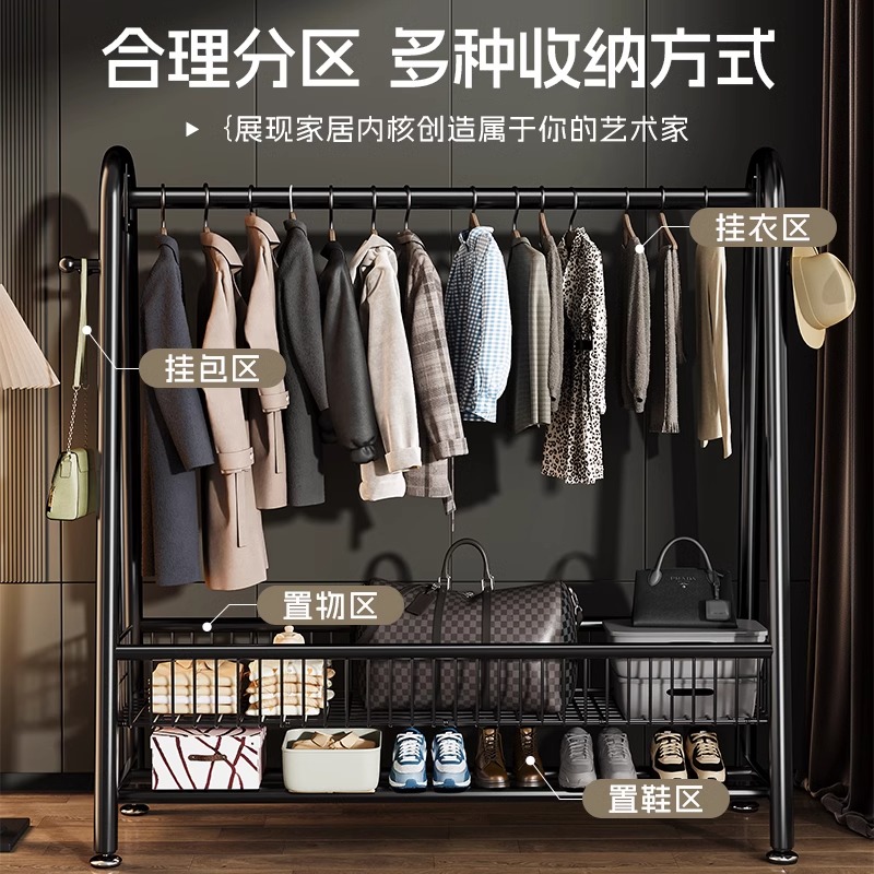 简易衣帽架落地室内房间挂衣架子可移动晾衣架家用卧室衣服收纳架