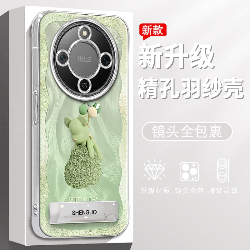 适用华为荣耀X70手机壳气球熊精孔羽纱Honor创意简约硅胶防摔荣耀X70高级感电镀支架新品保护套