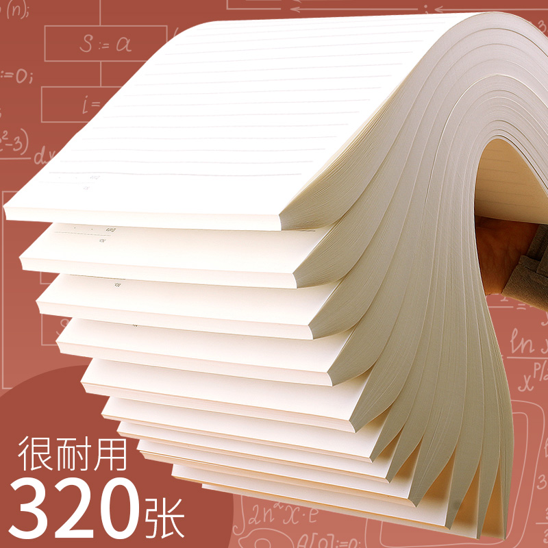 复古牛皮纸笔记本超厚空白本子加厚白纸本草稿本学习可平摊高颜值本记事本日记本a4a5小方格写作本大学生初中