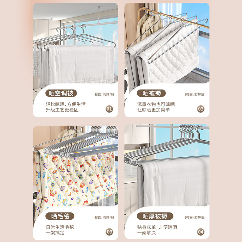 大衣架长晾衣架杆实心不锈钢晒被子床单家用阳台宿舍挂衣的加大号