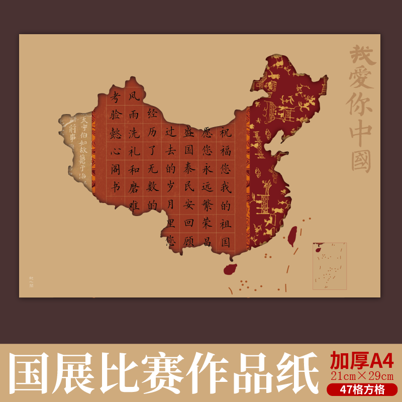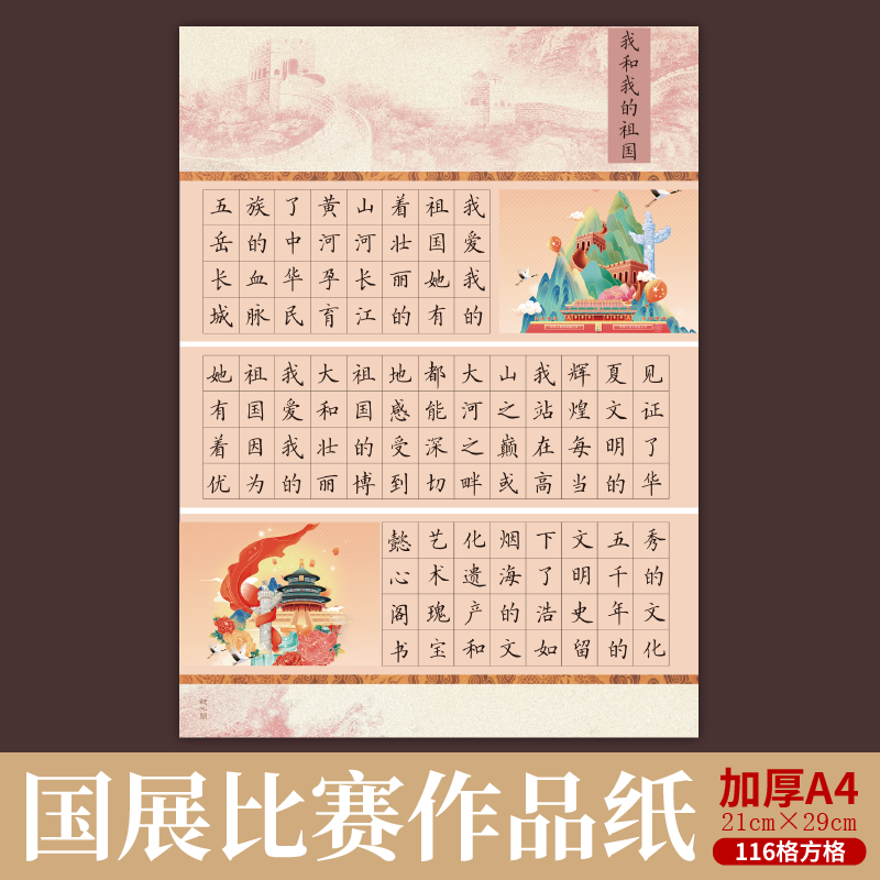 a4国庆节红色爱国主题硬笔书法作品纸方格书法纸小学生练字专用纸