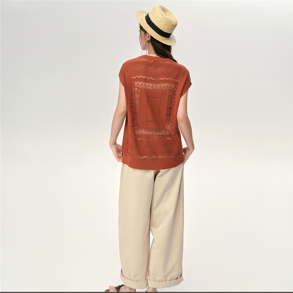 设计师款佐丹奴短袖针织衫女后幅镂空圆领小飞袖针织上衣18355807