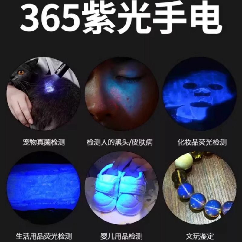 伍德氏灯照猫藓尿癣真菌检测手电筒紫外线荧光剂紫光验钞灯专用