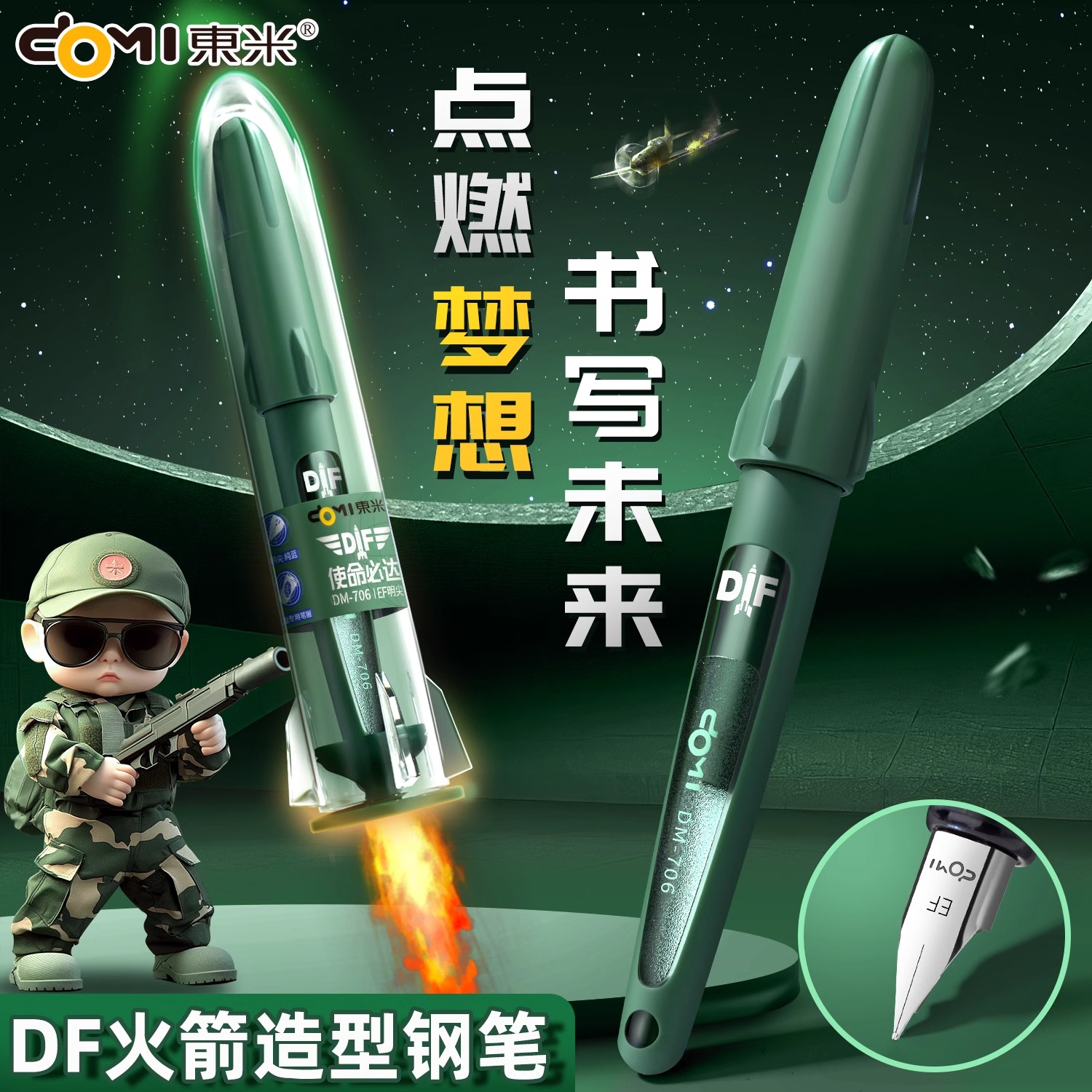 东米正姿钢笔小学生三年级练字书写用DM-706使命必达EF尖国风设计DF导弹可视窗签名书法矫正握姿顺滑不漏墨