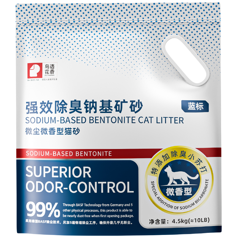 【4.5kgx3袋】鸟语花香蓝标除臭钠基膨润土猫砂低尘矿砂猫咪用品