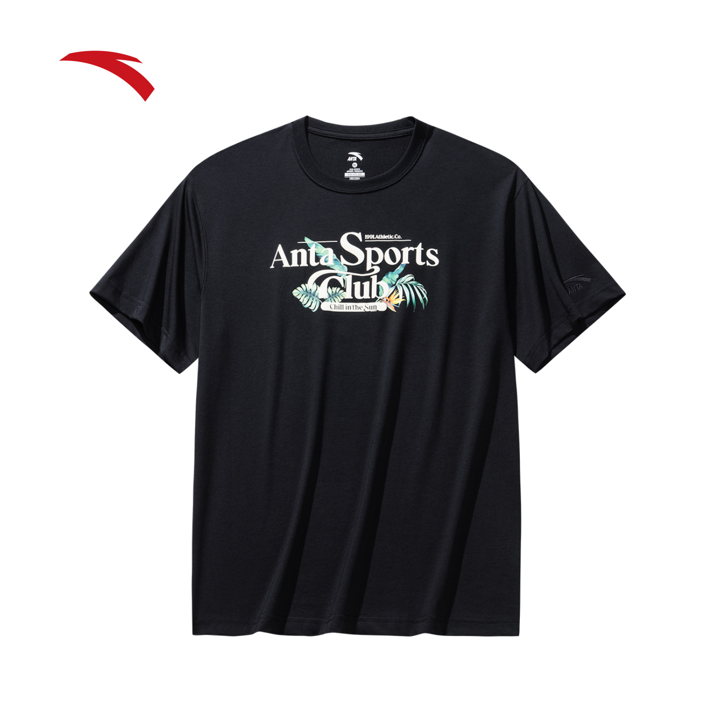 安踏宽松圆领冰丝T恤休闲短袖男装夏季新款印花百搭半袖152538122