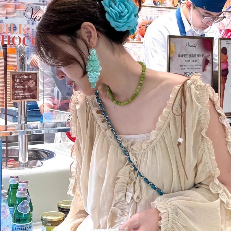 复古度假风贝壳流苏耳环海边薄荷绿夸张气质耳坠氛围感清新耳饰女