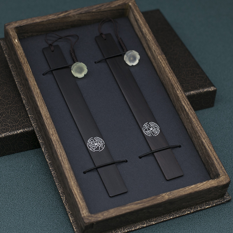 汉文化长乐未央长毋相忘永不停止黑檀手工镶银丝吉祥刻字文艺礼物