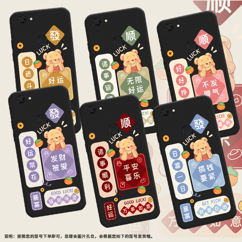 适用vivoY75a手机壳Y75s保护壳Y79全包边2018款Y75磨砂壳好运连连时尚财富自由顺萌熊纯黑色皆如所愿轻奢日渐