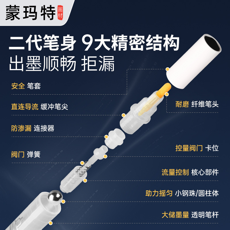 恩米小黑盒直液式丙烯马克笔软头颜色笔小学生幼儿园画画美术专用