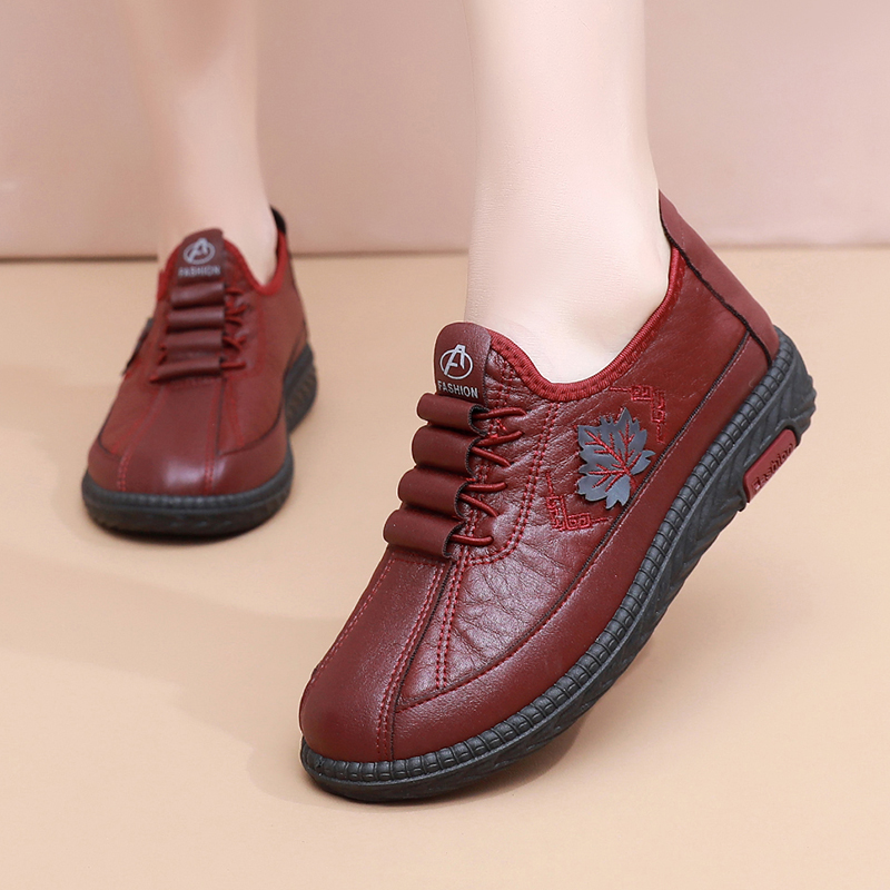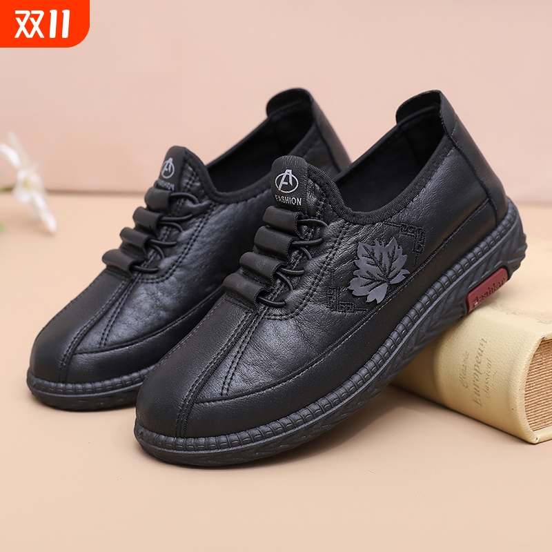 牛筋底妈妈鞋真皮防滑软底休闲中老年单鞋舒适蝴蝶结中年春秋皮鞋