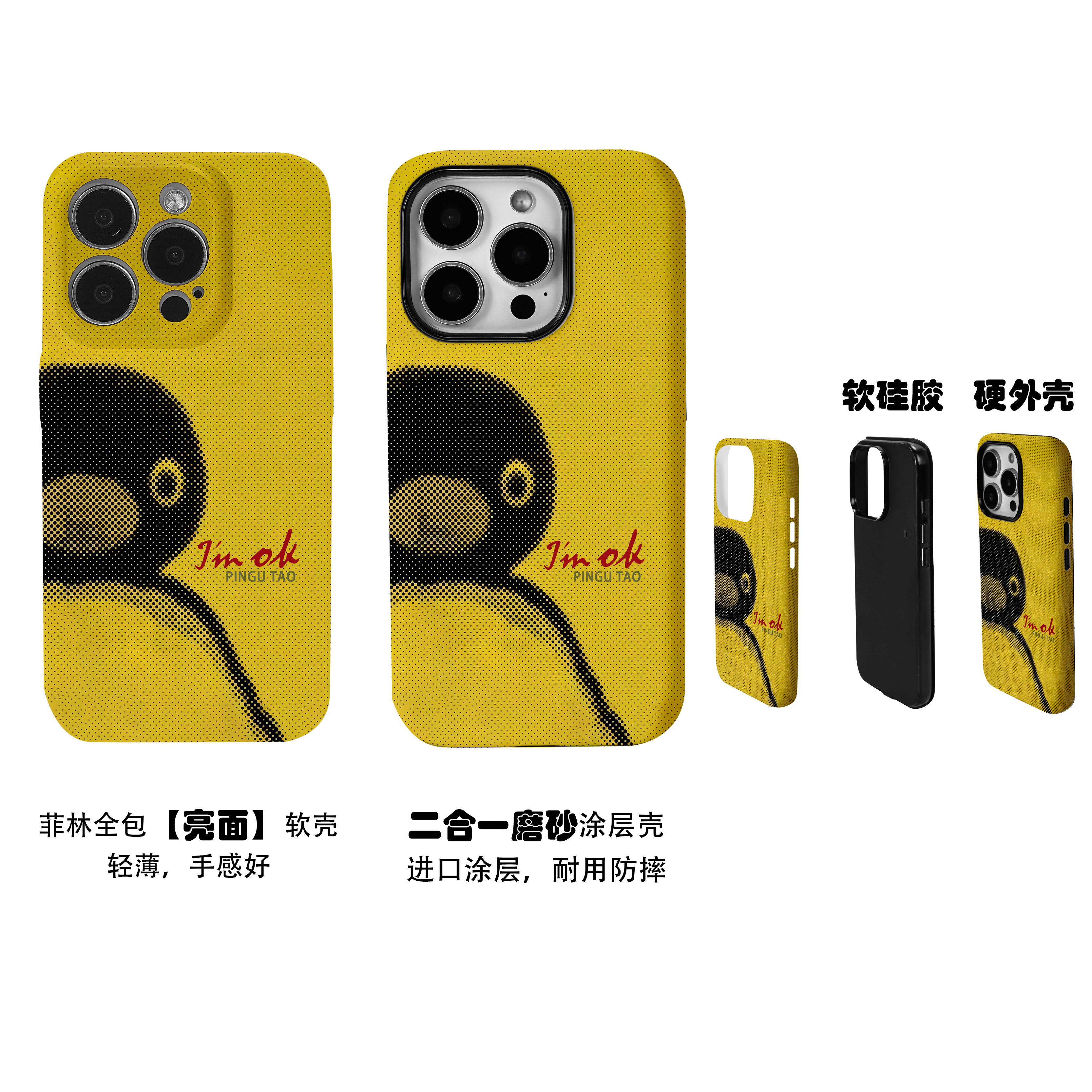 复古风企鹅我很好治愈菲林二合一手机壳适用苹果17nova14华为p70mate60小米15opporen14ovivo荣耀300iPhone16