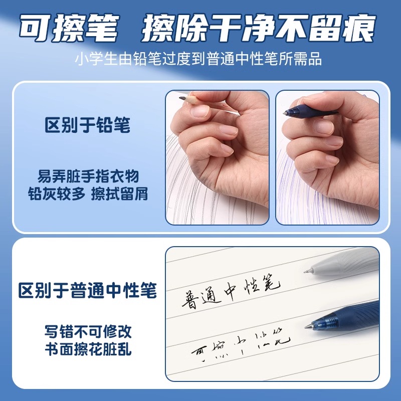 得力小学生可擦中性笔专用三年级按动式可擦笔男孩魔力檫笔女孩儿童蓝色黑色晶蓝笔芯摩易擦圆珠笔水笔可擦写