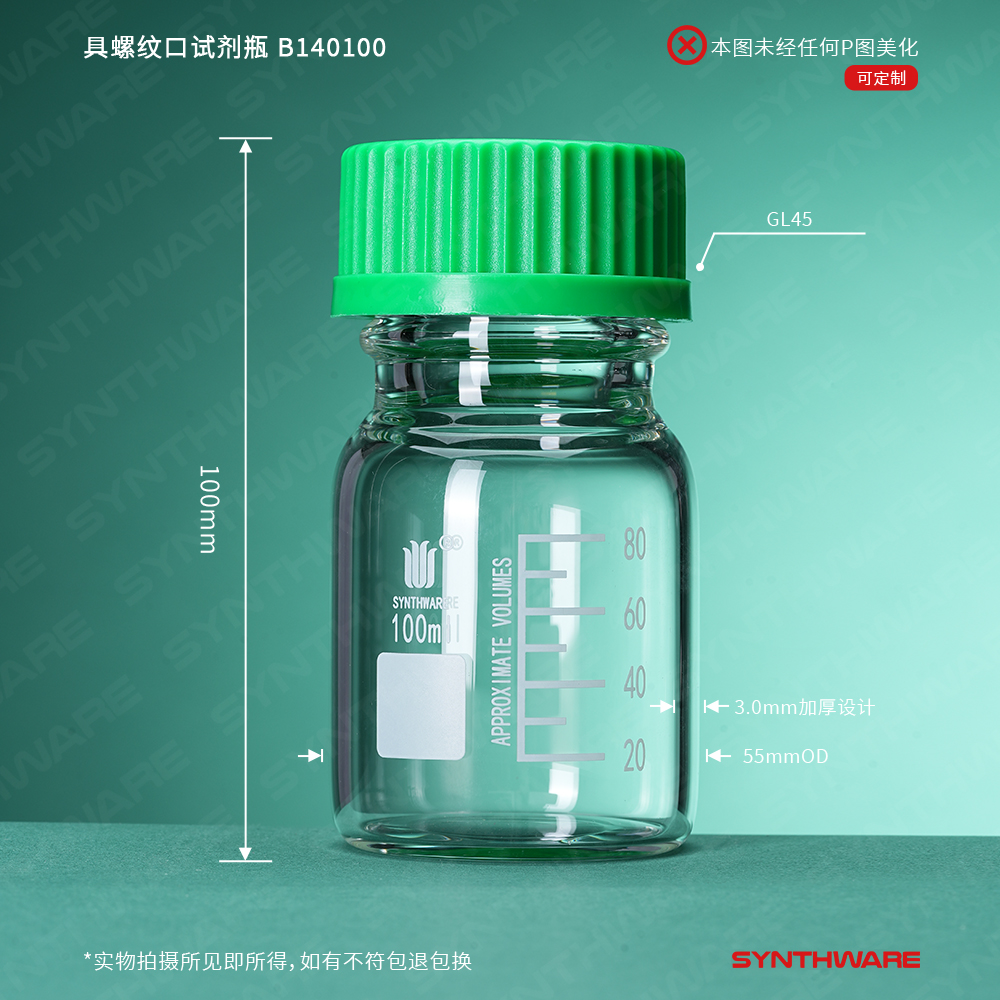 欣维尔具螺纹口试剂瓶含密封圈玻璃高硼硅实验室密封玻璃瓶试剂瓶样品瓶丝口棕色蓝盖刻度100/250/500/ml B14