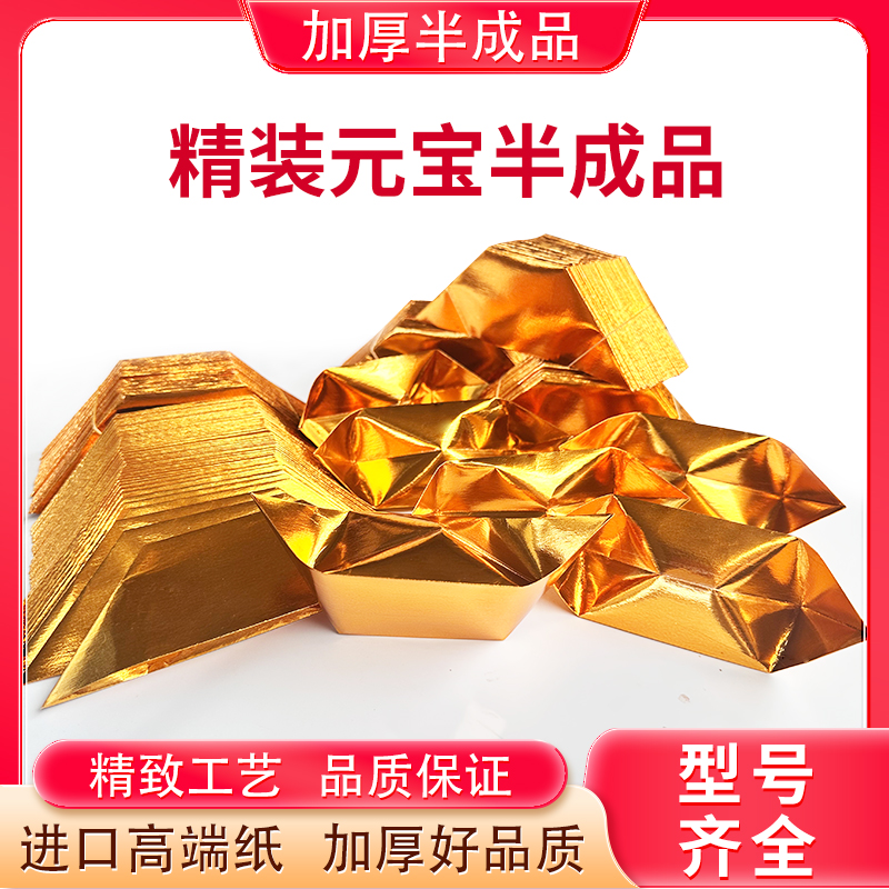 半成品手工批发1000个装元宝折纸免折叠金纸锡箔纸加厚切角送袋子金色