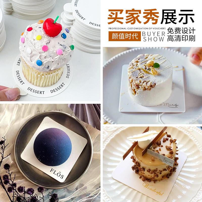 蛋糕底托定制烘焙甜品慕斯千层托底垫创意异形卡片logo二维码烫金银一次性底托设计蛋糕插牌异形插卡明信片