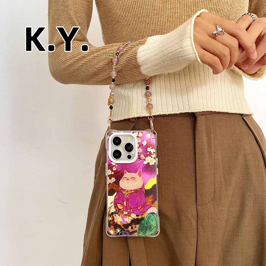 国风招财猫挂绳斜挎手机壳适用苹果16PROMAXVIVOX200华为小米15ULTRA手腕防摔FINDX8四角开孔mate70pro保护套