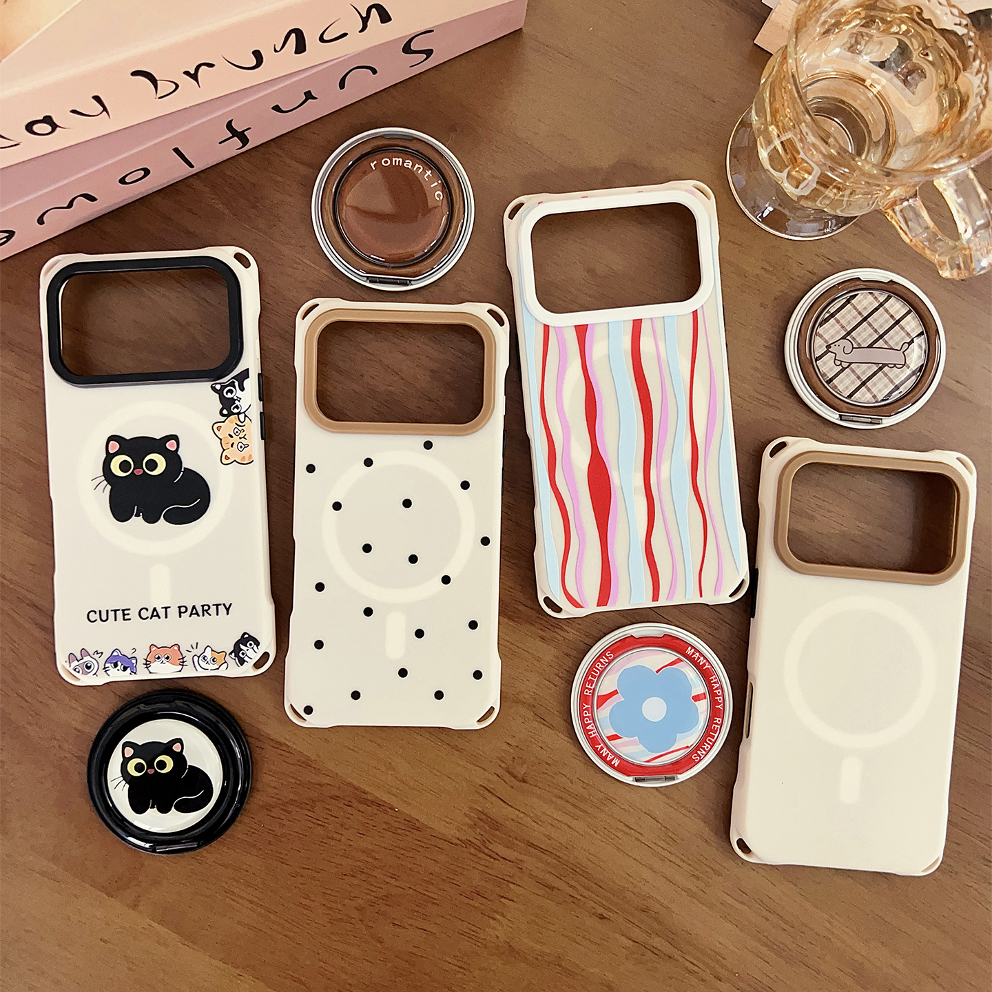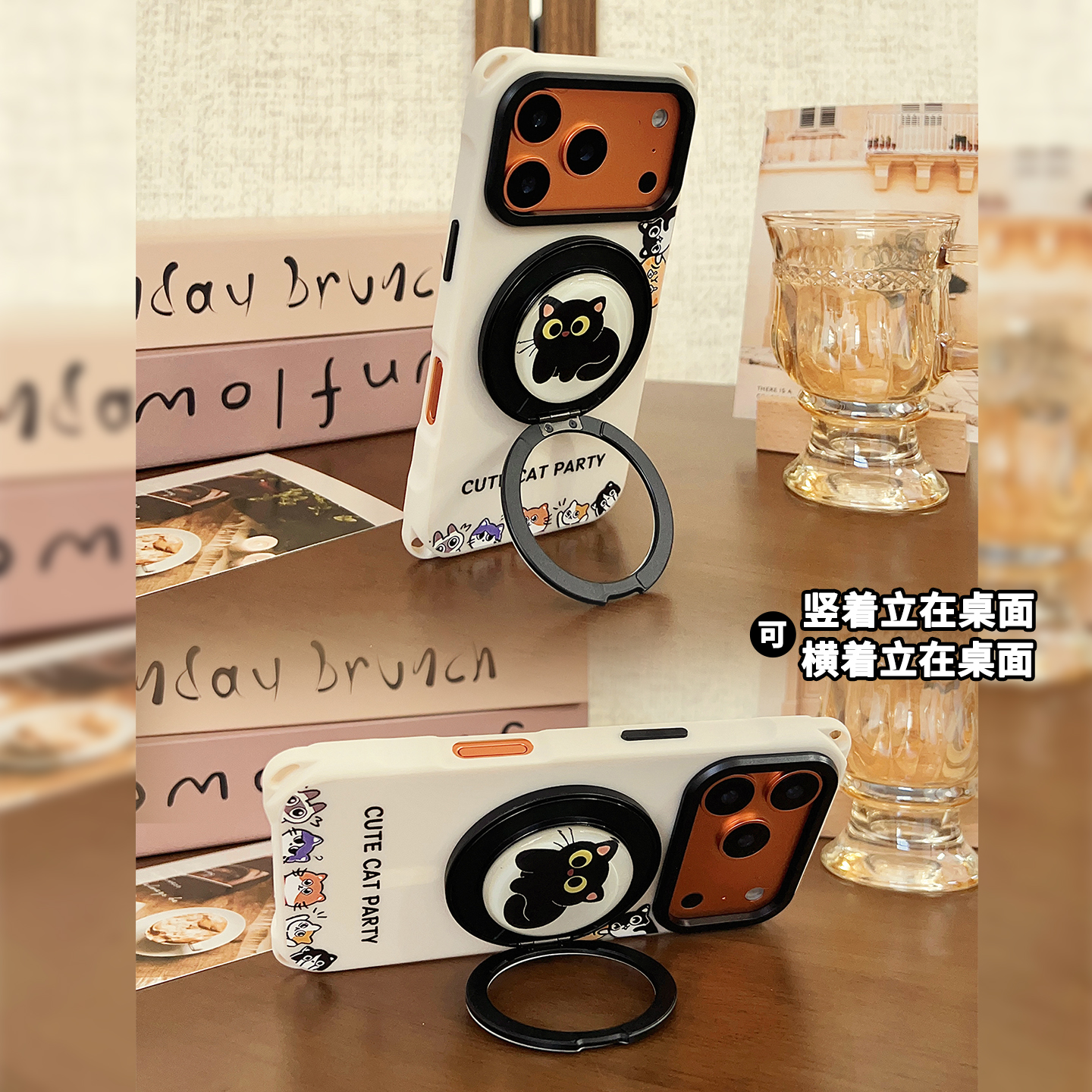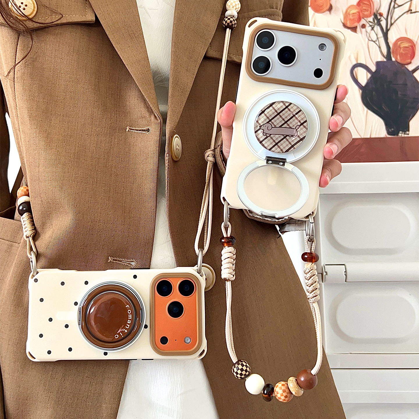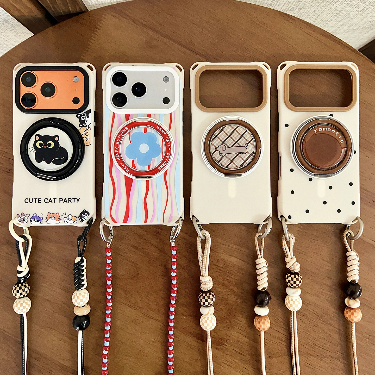 卡通磁吸支架手机壳带挂绳适用于苹果17promax背带斜挎iphone16pro四角开孔15PRO外壳女手提绳苹果14PM小众