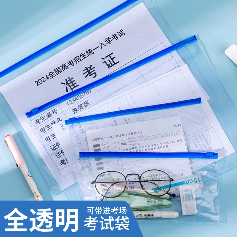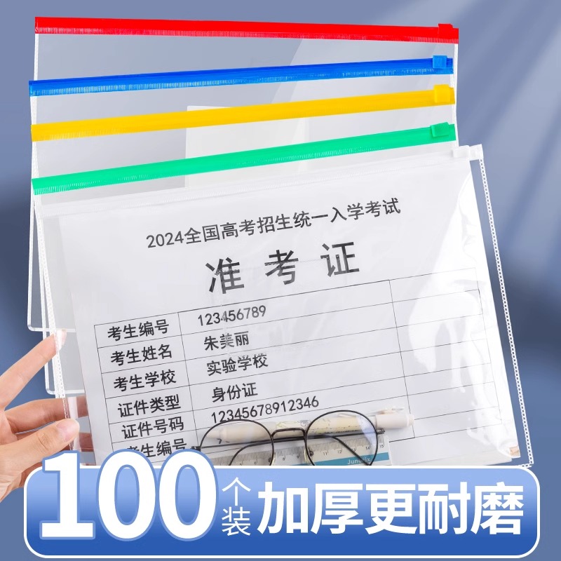 A4文件袋透明塑料拉链袋文具袋大容量拉边袋简约中小学生试卷考试袋专用袋a5高考家用证件文件防水密封袋